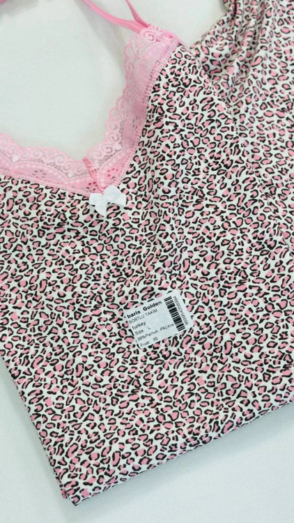 تاپ یقه تور ، قسمت سرشانه بندی می باشد. پارچه نخی صد در درصد ترک و تنوع رنگ طوسی ساده و صورتی پلنگی و قرمز پلنگی است .