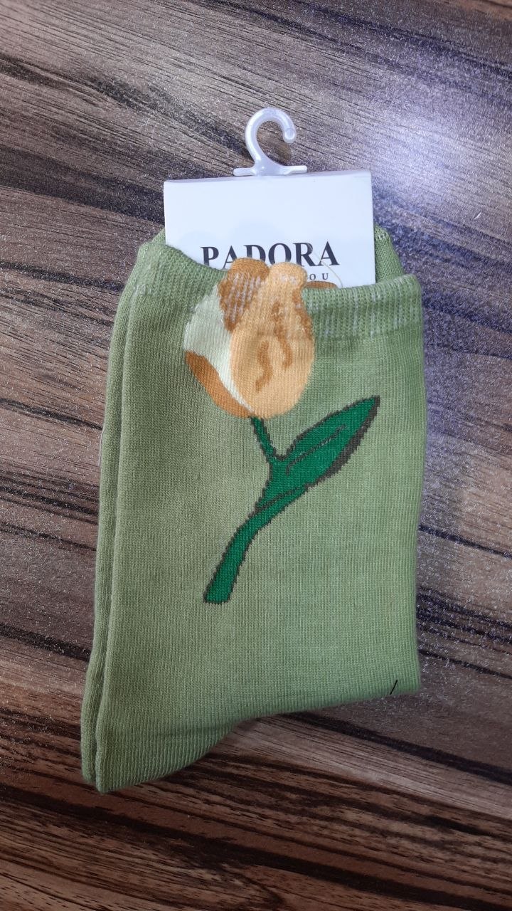 جوراب زنانه ، ساقدار ، طرح گل لاله ، رنگبندی متنوع ، برند PADORA