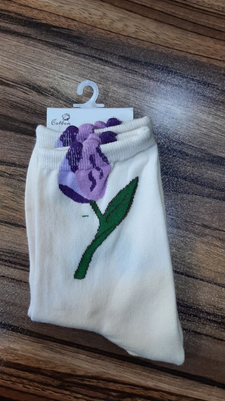 جوراب ساقدار طرح گل لاله، جورابی شیک و راحت است که با طرح گل لاله تزئین شده و میتواند جلوهای هنری و خاص به استایل شما بدهد؛ اغلب از جنسهای لطیف مانند پنبه تولید شده و با ساق متوسط (حدود 15 سانتیمتر) برای فصول مختلف مناسب است، هم برای راحتی روزمره و هم برای افزودن یک جزئیات جذاب به پوشش شما کاربرد دارد.