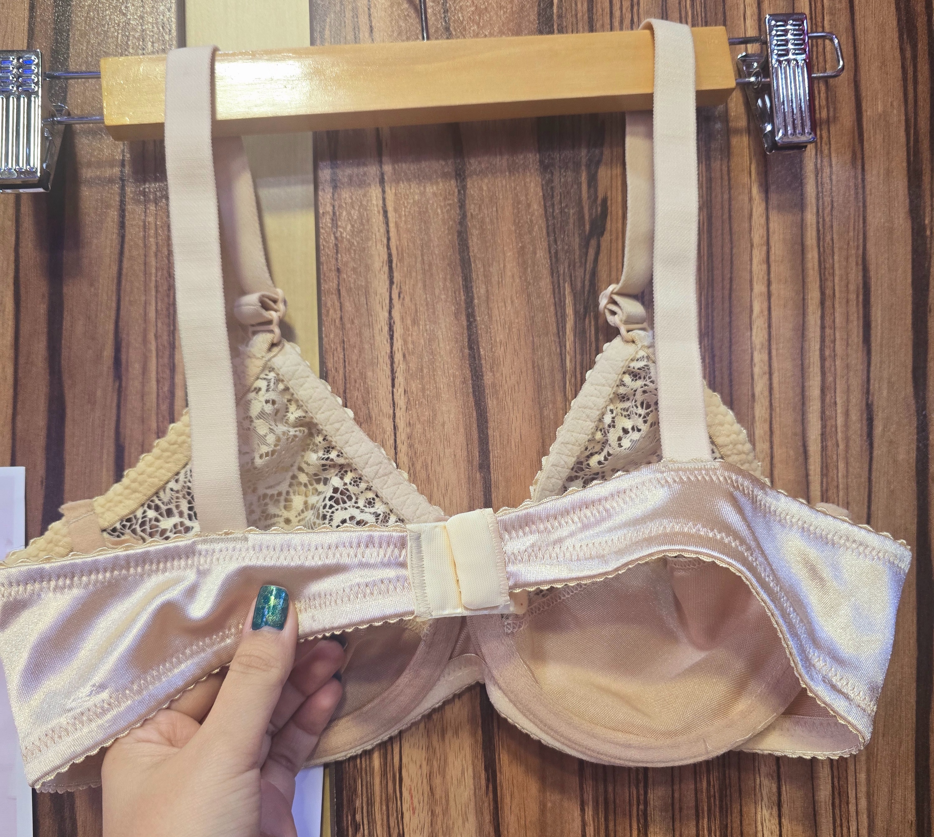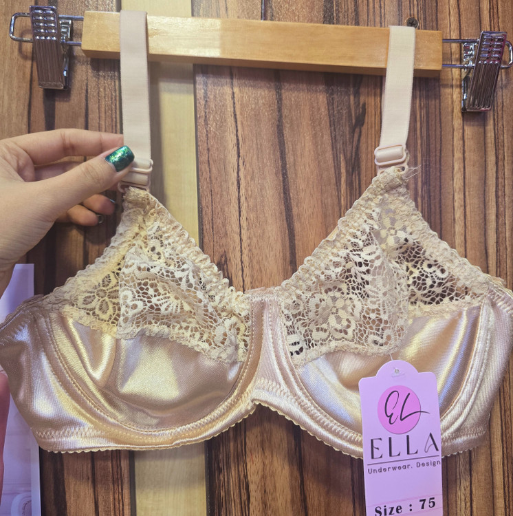ست لباس زیر زنانه ساتن و گیپور ، رنگ کرم ، برند الا (ELLA)