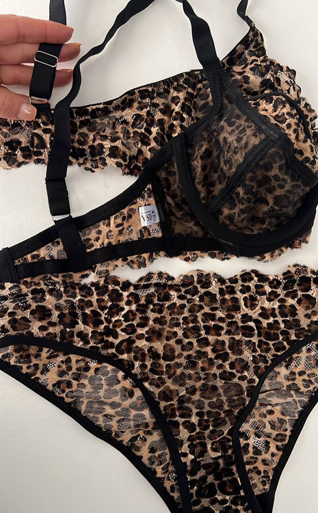 ست لباس زیر زنانه ، پلنگی ، دانتل شیک و با کیفیت ، برند میسا