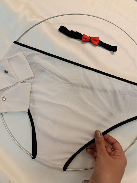 ویژگی: کاستوم شامل شورت و دو مچ بند و یک دور گردن پاپیون