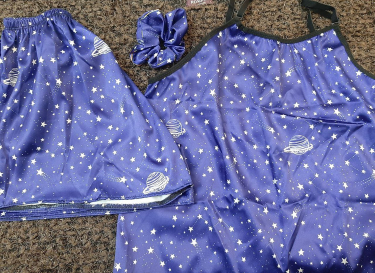 تاپ و شلوارک طرح کهکشان دوخته شده از پارچه ساتن بسیار نرم و با کیفیت و خنک