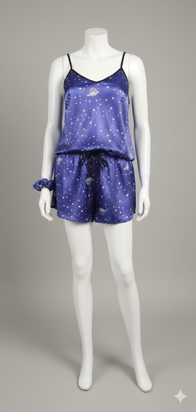 تاپ و شلوارک طرح کهکشان دوخته شده از پارچه ساتن بسیار نرم و با کیفیت و خنک