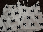 تاپ و شلوارک ساتن طرح پاپیون زمینه سفید دوخته شده از پارچه ساتن بسیار نرم و با کیفیت و خنک