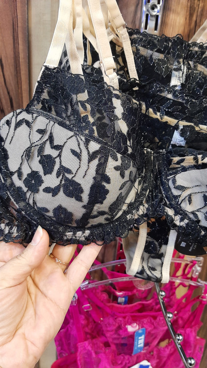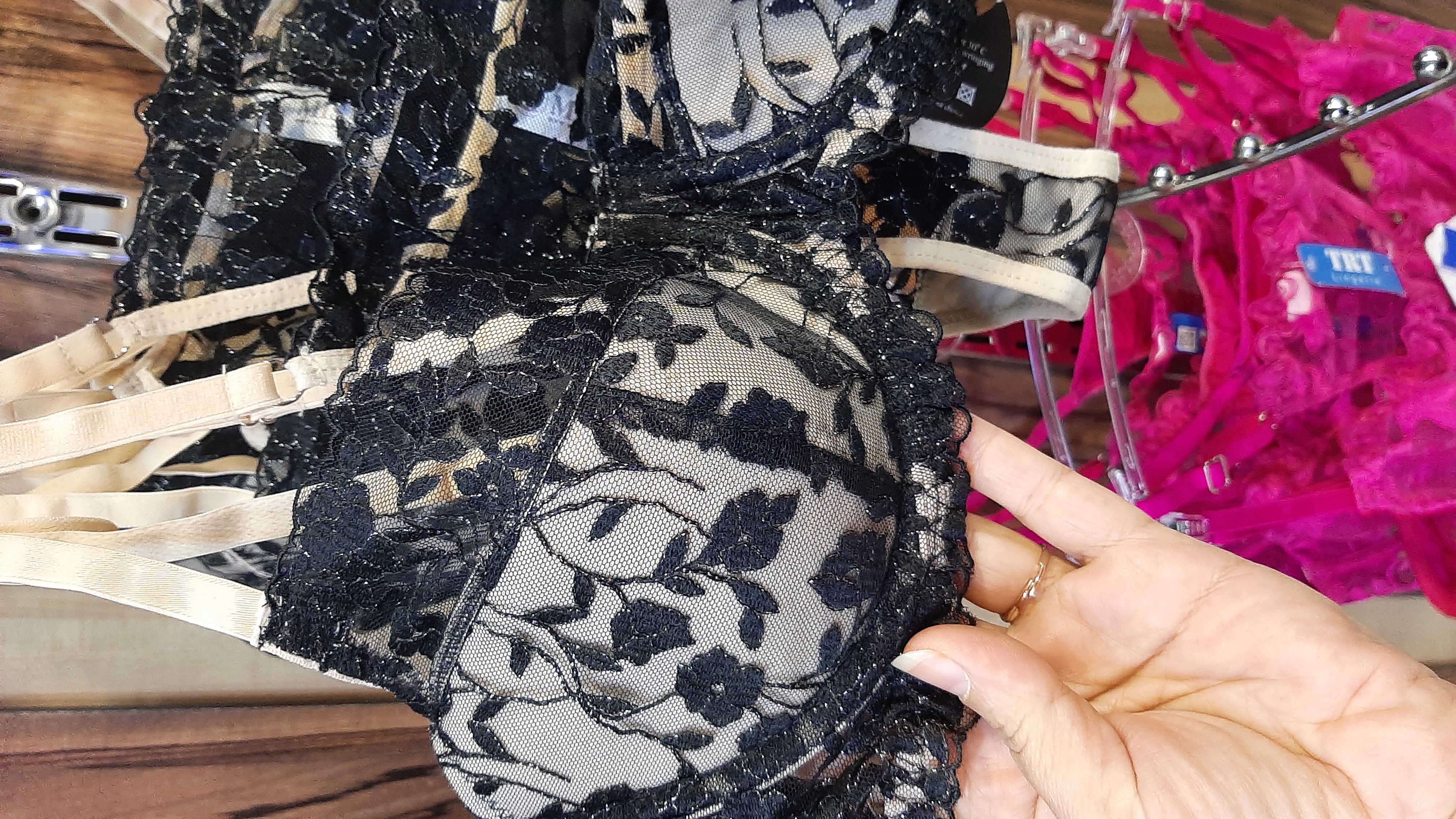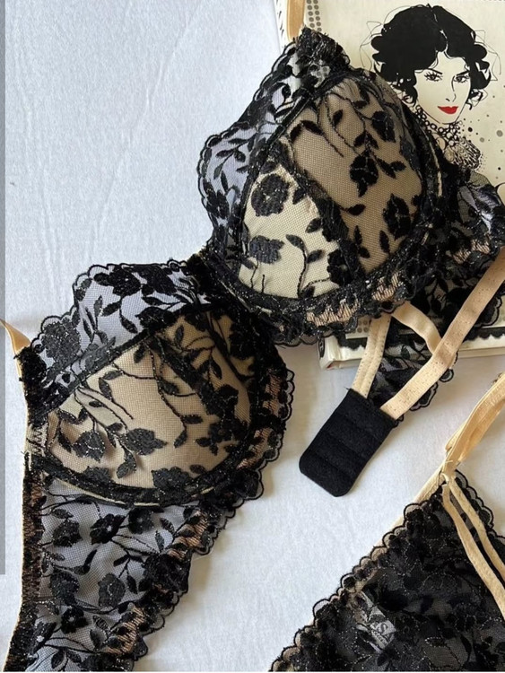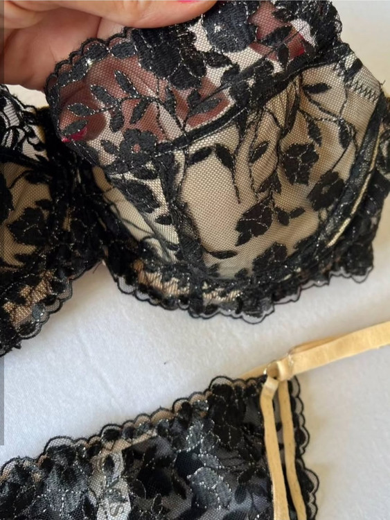ست لباس زیرزنانه ، تمام گیپور با لایه نازک در کاپ ، مشکی ، شورت لامبادا ، برند میسا