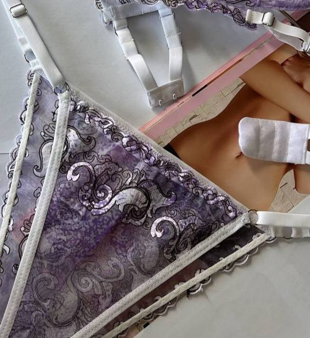 🌸 ست حریر طرح دار بسیار زیبا با بند تنظیمی در قسمت کاپ 👙